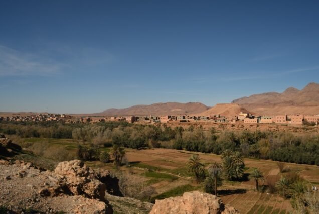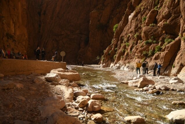 The Verdant Todra Valley and Gorge Today, you travel toward your final destination: the towering sand dunes of Erg Chebbi. The journey begins with a stop at the Todra Valley, a beautiful sight where you can take in the vibrant greens of the oasis contrasted against the red and orange hues of the surrounding desert. Nearby, you will explore the Todra Gorge, a breathtaking ravine cut by the Todra River with walls reaching 300 meters (984 feet). You can walk along the gorge to admire the unique geological features and natural beauty.