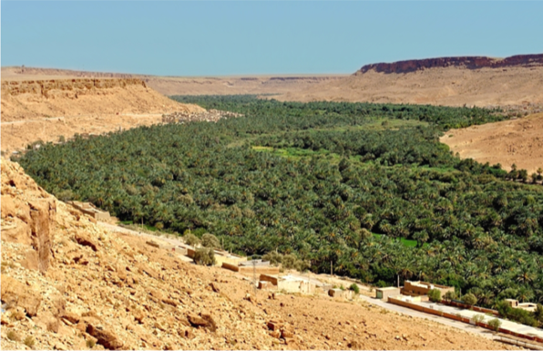 Toudra Gorges or Canyon lie only 9 miles from the Berber town of Tinghir, at 300 m (980 feet ) high, you can walk through the Gorges or you can enjoy a walk in its crystal clear water river emerging from it. Travel to Erfoud before reaching Merzouga. In Erfoud, you may stop to visit a fossil factory (optional) to learn about the fossil-rich area and see the full process of how fossil rock is transformed into beautiful products such as fountains and tables. Erfoud is also well known for its annual Date Festival.