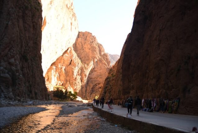 Continue toward the desert town of Tinghir, renowned for the spectacular Todra Gorges, a dramatic canyon with towering red limestone cliffs reaching up to 160 meters (520 feet) high. The narrow gorge, carved by the Todra River, is dotted with caves and offers breathtaking views of the surrounding landscape. Enjoy an easy walk through the canyon, or relax in the cool river water while taking in the beauty of this stunning natural site, a popular destination for hikers and sightseers.
